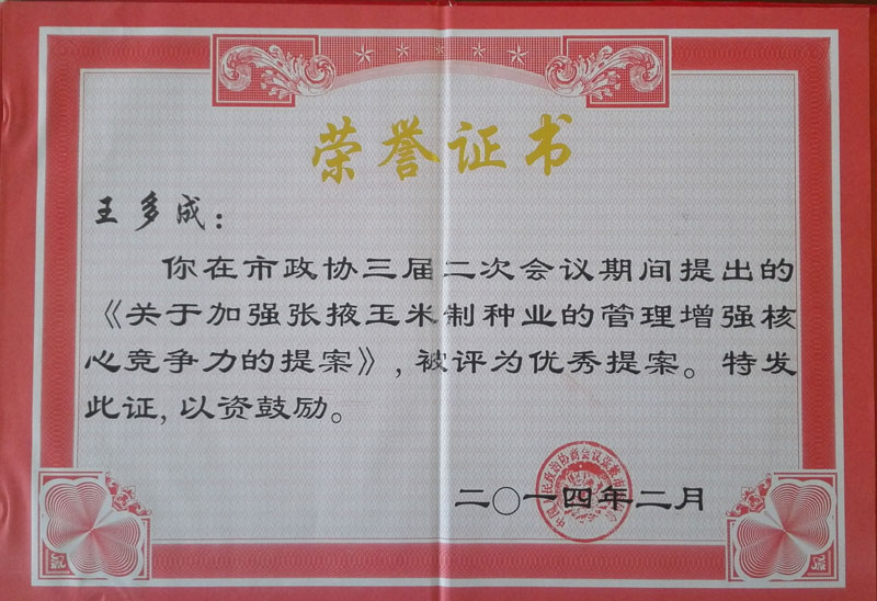 張掖市多成農(nóng)業(yè)有限公司是一家以玉米雜交種生產(chǎn)經(jīng)營為主的農(nóng)業(yè)科技型民營企業(yè)。公司由兩個種子加工廠和1個良種繁育基地及1個優(yōu)質(zhì)梨示范基地組成。加工廠占地15.8萬平方米,擁有種子加工線3條,檢驗室2個,年生產(chǎn)、加工能力2000萬公斤。有良種示范基地2000畝,優(yōu)質(zhì)梨示范基地500畝。固定資產(chǎn)總值超億元。 公司自成立以來,選育、示范推廣“正德”系列玉米新品種3個,年銷量1000多噸。先后與東北、華北、黃淮等地的多家大型種子企業(yè)建立了穩(wěn)定的……[查看全文] |